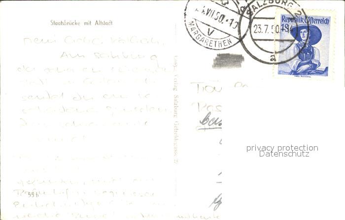 71934901 alte Postkarte Salzburg Oesterreich Staatsbruecke mit Altstadt postalisch gelaufen Erhaltung siehe scans KatCode: 11390323050101