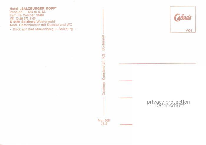 72896571 Salzburg Westerwald Panorama postalisch nicht gelaufen Erhaltung siehe scans [FriedD77] KatCode: 11110007143291