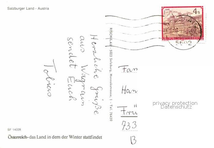 72849253 alte Postkarte Salzburger Land Flachau Wagrain Sankt Johann Winter Skipistenplan postalisch gelaufen Erhaltung siehe scans [KathaD81] KatCode: 11390323050101