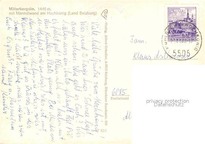 72849295 alte Postkarte Salzburger Land Mitterbergalm Manndlwand Hochkoenig postalisch gelaufen Erhaltung siehe scans [KathaD81] KatCode: 11390323050101