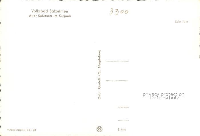 72273334 Salzelmen Bad Alter Soleturm im Kurpark postalisch nicht gelaufen Erhaltung siehe scans KatCode: 11110015089305