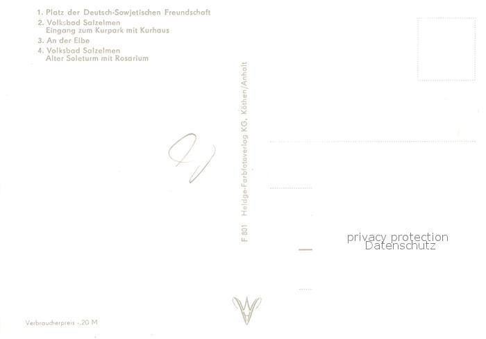72996322 Salzelmen Bad Platz der DSF Volksbad Kurpark Kurhaus Elbepartie Alter Soleturm mit Rosarium postalisch nicht gelaufen Erhaltung siehe scans [WerneD78] KatCode: 11110015089305