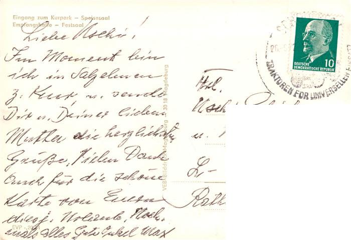 73914863 alte Postkarte Salzelmen Bad Volksbad Eingang zum Kurpark Speisesaal Empfangshalle Festsaal postalisch gelaufen Erhaltung siehe scans [WerneD78] KatCode: 11110015089305