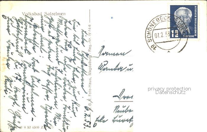 72355072 alte Postkarte Salzelmen Bad Volksbad postalisch gelaufen Erhaltung siehe scans KatCode: 11110015089305