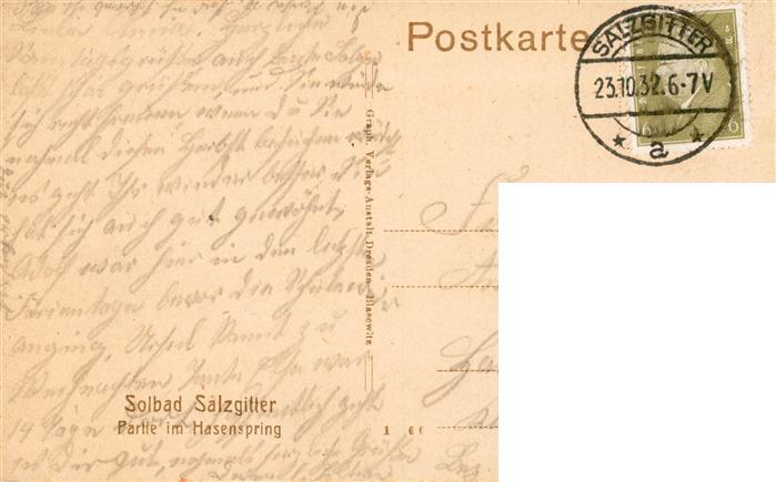 73899350 alte Postkarte Salzgitter Partie im Hasenspring postalisch gelaufen Erhaltung siehe scans [WerneD78] KatCode: 11110003102000