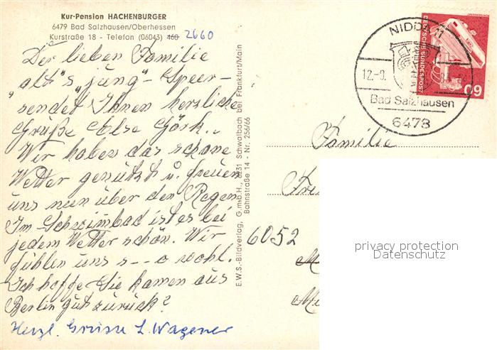 73240512 alte Postkarte Salzhausen Bad Kur Pension Hachenburger postalisch gelaufen Erhaltung siehe scans [KathaD81] KatCode: 11110006440016