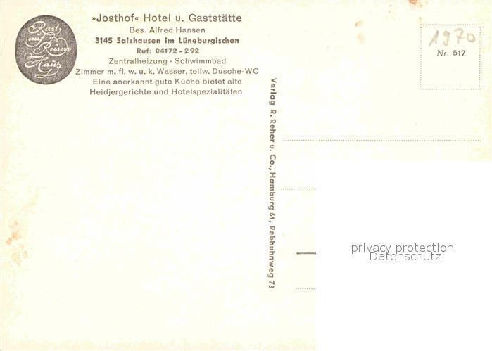72914716 Salzhausen Lueneburger Heide Josthof Hotel Gaststaette postalisch nicht gelaufen Erhaltung siehe scans [NatalD47] KatCode: 11110003353030