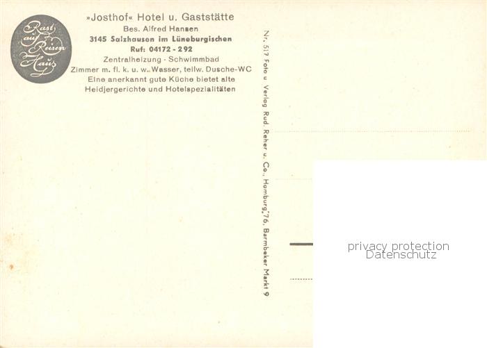 73764555 Salzhausen Lueneburger Heide Josthof Hotel und Gaststaette postalisch nicht gelaufen Erhaltung siehe scans [FriedD77] KatCode: 11110003353030