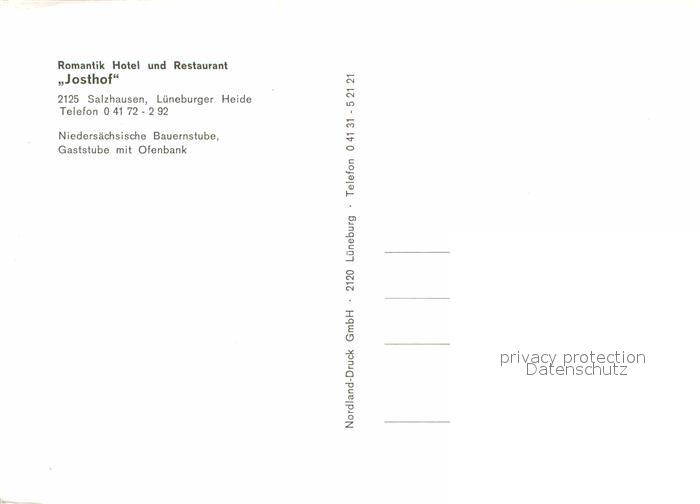 72709387 Salzhausen Lueneburger Heide Romantik Hotel Restaurant Josthof postalisch nicht gelaufen Erhaltung siehe scans [FriedD77] KatCode: 11110003353030