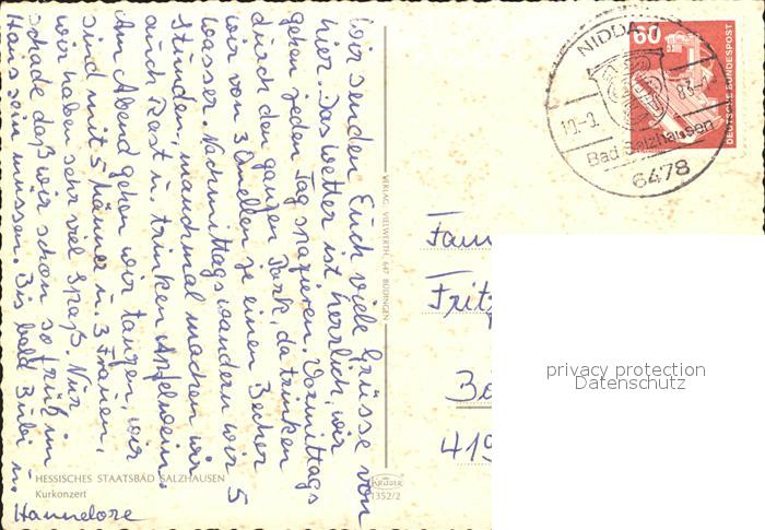 72276911 alte Postkarte Salzhausen Oberhessen Kurkonzert postalisch gelaufen Erhaltung siehe scans KatCode: 11110006440016