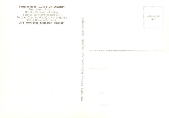 73896720 Salzhemmendorf Berggasthaus Zum Fichtenwirt postalisch nicht gelaufen Erhaltung siehe scans [WerneD78] KatCode: 11110003252008