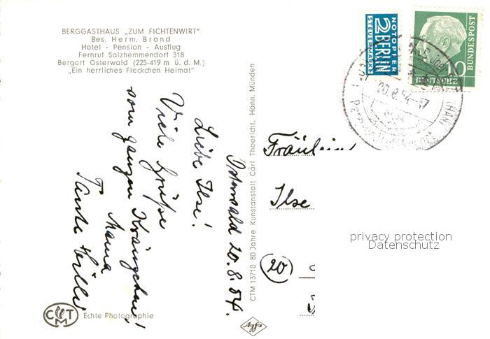 73817715 alte Postkarte Salzhemmendorf Berggasthaus Zum Fichtenwirt postalisch gelaufen Erhaltung siehe scans [WerneD78] KatCode: 11110003252008