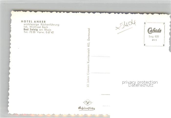 42975686 Salzig Bad Hotel Anker Nacht postalisch nicht gelaufen Erhaltung siehe scans [KathaD81] KatCode: 11110007140501