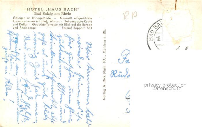 43155522 alte Postkarte Salzig Bad Hotel Haus Bach postalisch gelaufen Erhaltung siehe scans [KathaD81] KatCode: 11110007140501