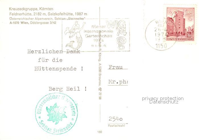 73230982 alte Postkarte Salzkofelhuette Feldnerhuette postalisch gelaufen Erhaltung siehe scans [LiesaD40] KatCode: 11390212020633