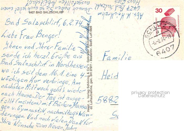 72796810 alte Postkarte Salzschlirf Bad Luftaufnahme Panorama postalisch gelaufen Erhaltung siehe scans [KathaD81] KatCode: 11110006631001