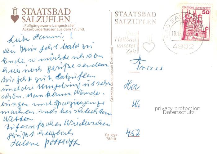 73093998 alte Postkarte Salzuflen Bad Fussgaengerzone Langestrasse Ackerbuergerhaeuser postalisch gelaufen Erhaltung siehe scans [KathaD81] KatCode: 11110005766008