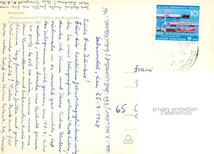 72726521 alte Postkarte Salzwedel Buergermeisterhof in der Burgstrasse postalisch gelaufen Erhaltung siehe scans [FriedD77] KatCode: 11110015081455