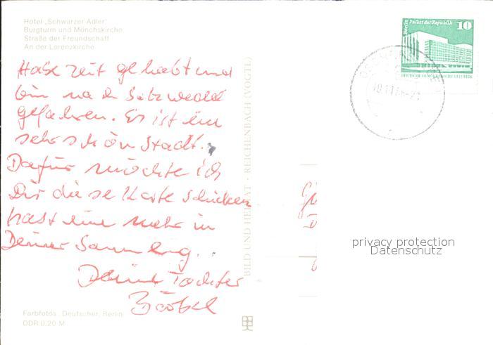 72371425 alte Postkarte Salzwedel Hotel Schwarzer Adler Burgturm Moenchskirche Strasse der Freundschaft Lorenzkirche postalisch gelaufen Erhaltung siehe scans KatCode: 11110015081455