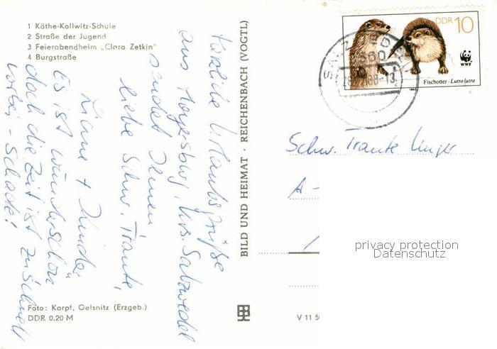 72729669 alte Postkarte Salzwedel Kaethe Kollwitz Schule Strasse der Jugend Feierabendheim Clara Zetkin Burgstrasse postalisch gelaufen Erhaltung siehe scans [FriedD77] KatCode: 11110015081455
