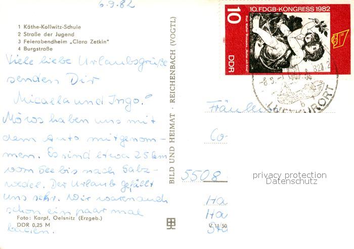 73067323 alte Postkarte Salzwedel Kaethe Kollwitz Schule Strasse der Jugend Feierabendheim Clara Zetkin Burgstrasse postalisch gelaufen Erhaltung siehe scans [WerneD78] KatCode: 11110015081455