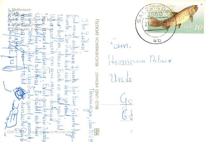 73924689 alte Postkarte Salzwedel Pfefferteich Burggarten Joh Friedr Danneil Museum Strasse der Jugend Strasse der Freundschaft postalisch gelaufen Erhaltung siehe scans [FriedD77] KatCode: 11110015081455