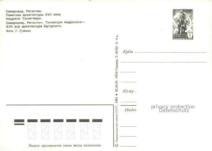 74042080 Samarkand Usbekistan tillakori Madrasasi postalisch nicht gelaufen Erhaltung siehe scans [IrynaD87] KatCode: 12340