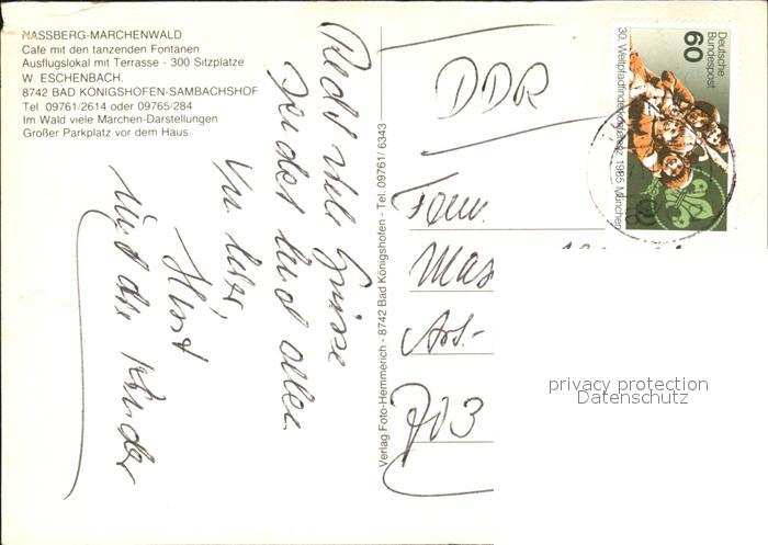 72515537 alte Postkarte Sambachshof Wasserspiele Cafe Maerchenwald postalisch gelaufen Erhaltung siehe scans KatCode: 11110009673141