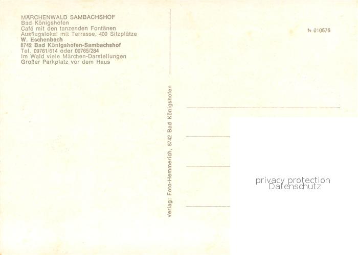 73720354 Sambachshof Wasserspiele Cafe Maerchenwald postalisch nicht gelaufen Erhaltung siehe scans [FriedD77] KatCode: 11110009673141