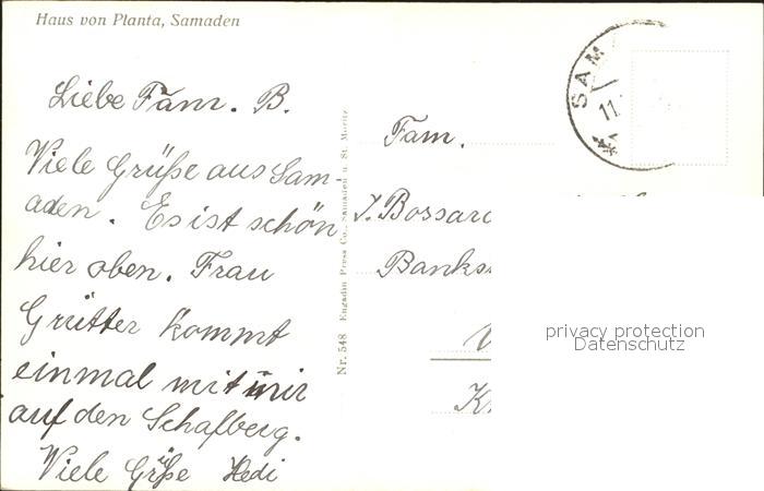 12029998 alte Postkarte Samedan Haus von Planta postalisch gelaufen KatCode: 11470100335222