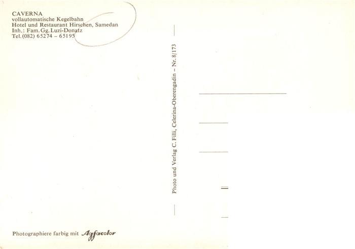 13891349 Samedan Samaden GR Caverna Hotel Restaurant Hirschen postalisch nicht gelaufen Erhaltung siehe scans [WerneD78] KatCode: 11470100335222