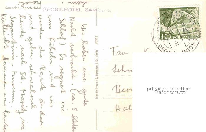 12736808 alte Postkarte Samedan Sport Hotel postalisch gelaufen Erhaltung siehe scans [AndreD76] KatCode: 11470100335222