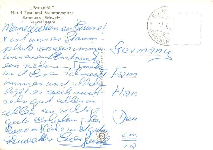 13880534 alte Postkarte Samnaun Dorf GR Poststuebli Hotel Post postalisch gelaufen Erhaltung siehe scans [FriedD77] KatCode: 11470100325154