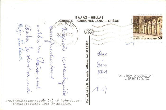 old postcard Samos Griechenland Pythagorio Kirche Hafen postalisch gelaufen Erhaltung siehe scans