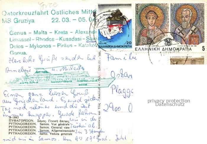 74015061 old postcard Samos Samo Greece Panorama postalisch gelaufen Erhaltung siehe scans [FriedD77] KatCode: 11190