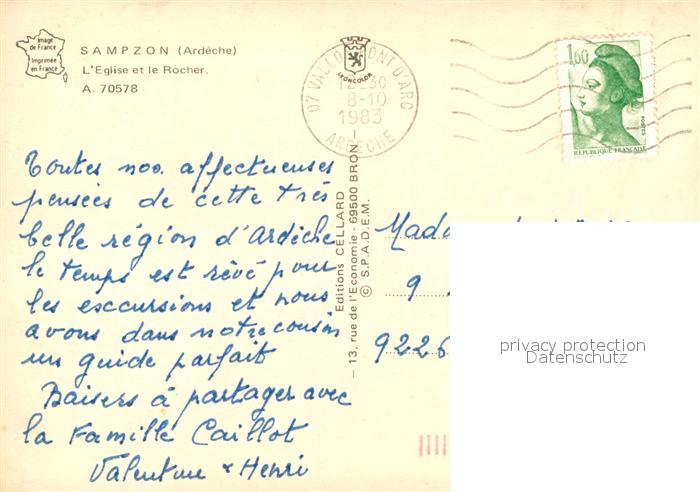 carte postale Sampzon Panorama Eglise et le Rocher postalisch gelaufen Erhaltung siehe scans [FriedD77]