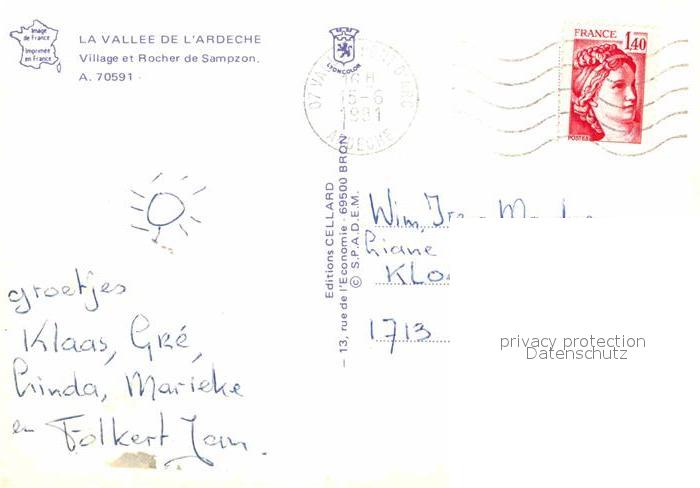 12903596 carte postale Sampzon Village et Rocher de Sampzon Strand Bruecke postalisch gelaufen Erhaltung siehe scans [FriedD77] KatCode: 11170007107306