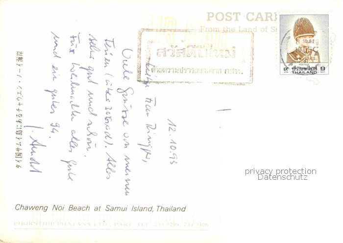 old postcard Samui Thailand Noi Beach postalisch gelaufen Erhaltung siehe scans [LiesaD40]