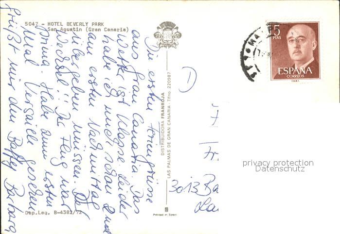 old postcard San Agustin Gran Canaria Hotel Beverly Park postalisch gelaufen Erhaltung siehe scans