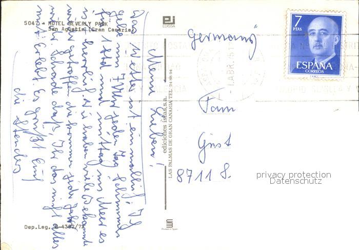 old postcard San Agustin Gran Canaria Hotel Beverly Park postalisch gelaufen Erhaltung siehe scans
