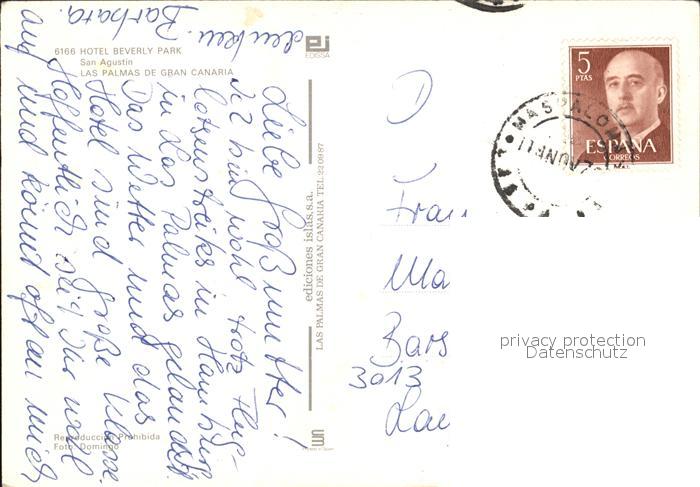 old postcard San Agustin Gran Canaria Hotel Beverly Park postalisch gelaufen Erhaltung siehe scans