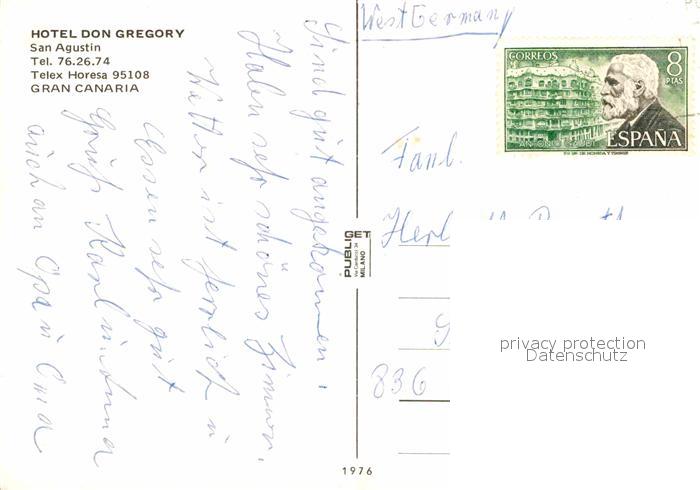 old postcard San Agustin Gran Canaria Hotel Don Gregory Strand postalisch gelaufen Erhaltung siehe scans [FriedD77]