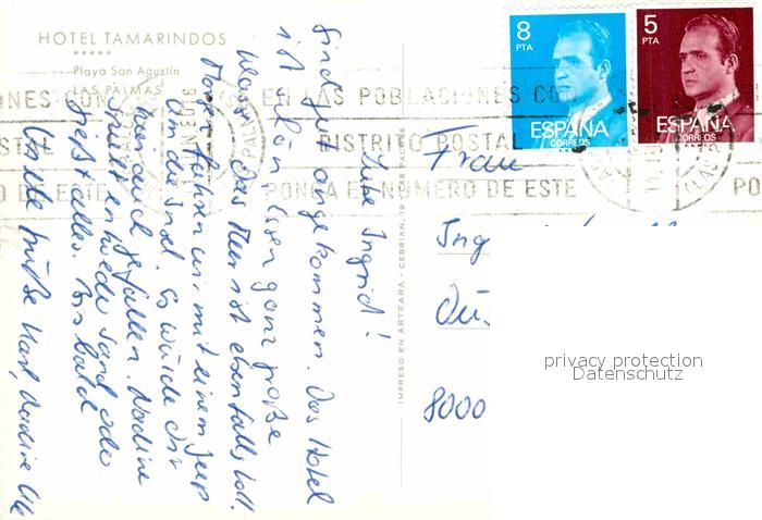 old postcard San Agustin Gran Canaria Hotel Tamarindos Swimming Pool postalisch gelaufen Erhaltung siehe scans [FriedD77]