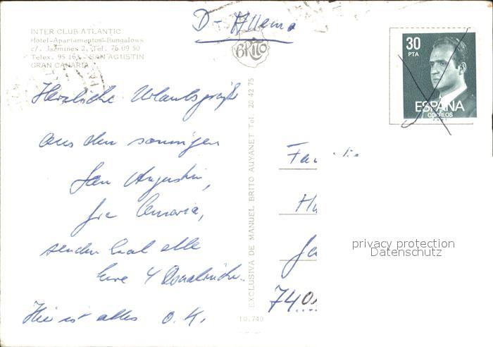 San Agustin Gran Canaria Inter Club Atlantic postalisch nicht gelaufen Erhaltung siehe scans