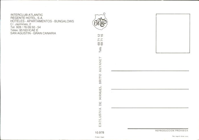 San Agustin Gran Canaria Interclub Atlantic Regente Hotel Apartamentos Bungalows Piscina postalisch nicht gelaufen Erhaltung siehe scans