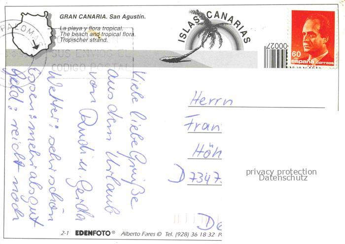 74006103 old postcard San Agustin Gran Canaria La playa y flora tropical postalisch gelaufen Erhaltung siehe scans [FriedD77] KatCode: 11510