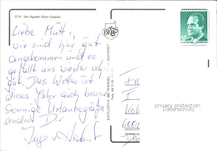 San Agustin Gran Canaria Panorama postalisch nicht gelaufen Erhaltung siehe scans