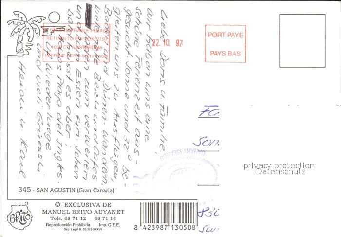 old postcard San Agustin Gran Canaria Strand postalisch gelaufen Erhaltung siehe scans [NatalD47 kv014box]