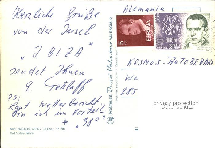 old postcard San Antonio Abad Calo des Moro Inselkarte Ibiza und Formentera postalisch gelaufen Erhaltung siehe scans