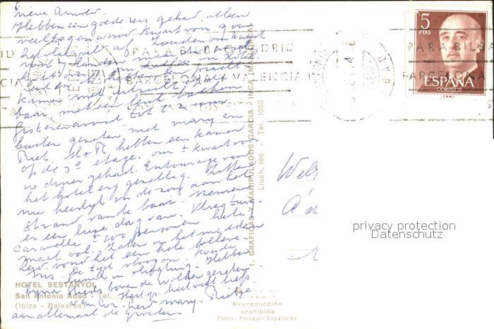 old postcard San Antonio Abad Hotel Sestanyol Fliegeraufnahme postalisch gelaufen Erhaltung siehe scans